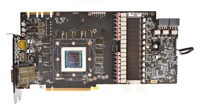 大家從GTX 1080 Ti的外觀上其實可以看出來:小型化的訣竅就是充分利用每一寸空間,比如為壓制GP102大核心帶來的熱量而幾乎“遍布全身”的風扇,這其實就是緊湊設計的最明顯特點。但內部的PCB設計呢?要想成功將GTX 1080 Ti縮小的同時還能保持性能不掉價、同時擁有足夠強大的散熱,能夠保證索泰GTX 1080 Ti Mini即使在小機箱內也能保持在讓人滿意的溫度,一切都需要在內在下功夫。