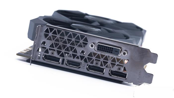 雖然GTX 1080 Ti Founder Edition已經取消DVI接口,但是在大多數非公版顯卡上我們還是可以看到這一覆蓋面非常廣的視頻接口,索泰GTX 1080 Ti Mini也沒有免俗,共有一處DVI、一處HDMI,以及三處DisplayPort接口。