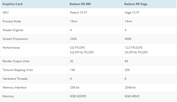 對比來看,Vega 10在流處理器上是RX 480的1.7倍,正好是RX 470的兩倍,如果從這一角度出發,似乎看齊GTX 1080算是最好水平了。