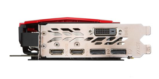不同于NVIDIA公版的設(shè)計(jì),微星GTX 1080Ti 紅龍的輸出端口配置更均衡,對(duì)老顯示器用戶更友好。前者只有DP1.4×3+HDMI2.0×1,紅龍則是DP1.4×2+HDMI2.0×2+DVI-D×1。