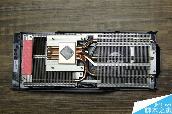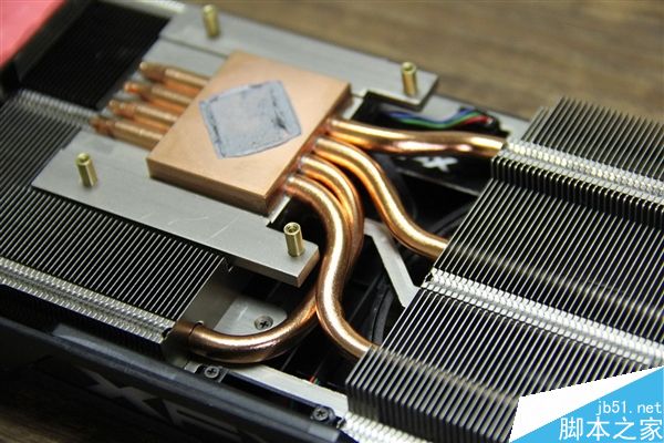 重點來看看手頭這塊RX 580深紅版,酷魂5代散熱系統,全銅散熱底座,四根復合工藝純銅導管,可拆卸風扇扇葉更直,據說噪音更低。