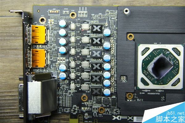 內部采用6相供電,TrueX定制電感,IR DirectFET Plus MOSFET,8+6針供電,輸出接口在公版一個HDMI、三個DisplayPort的基礎上增加了一個DVI。
