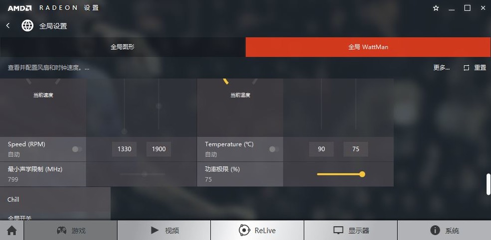 按照北極星的傳統(tǒng),超頻前先進(jìn)Wattman拉一下功耗,這張卡的功耗可以拉到75%,480不是都只能拉50%嗎?這我也不知道怎么解釋了。