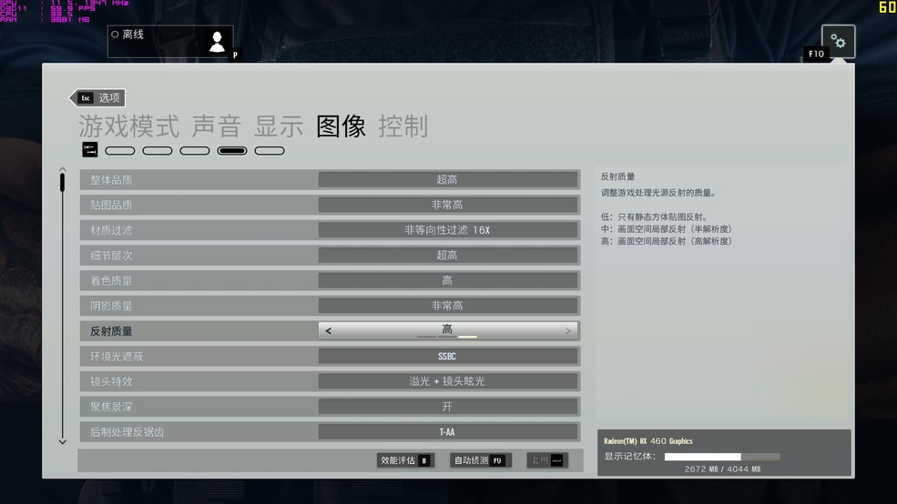 手上還有個(gè)彩虹六號:圍攻,雖然是舊游戲,不過可玩性還是不錯(cuò)的, 默認(rèn)超高特效可以跑出63幀。