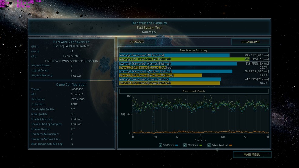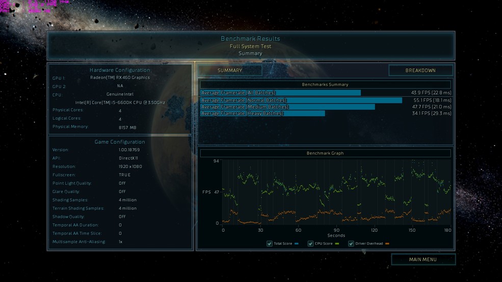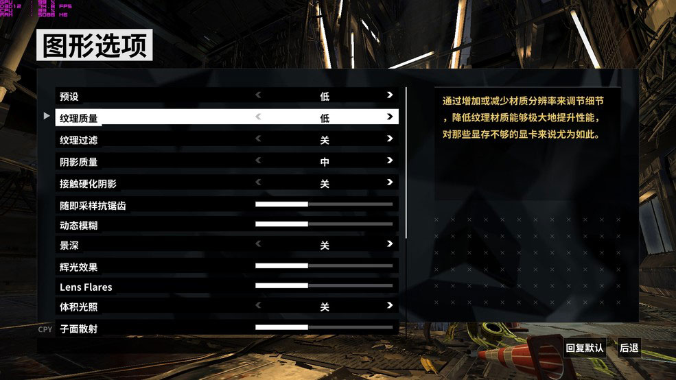 全境封鎖最低特效能跑到平均49.5幀,不過這個(gè)游戲我試玩的時(shí)候很容易頭暈,可能是因?yàn)閹瑪?shù)太低的緣故。