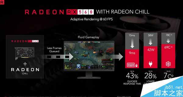 借助于Radeon Chill,它可以將功耗降低28%,溫度降低7℃,響應(yīng)時(shí)間加快43%。