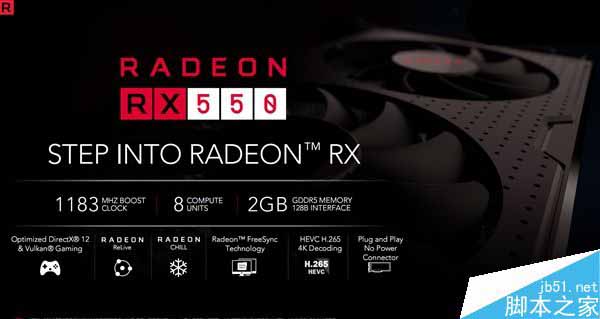 最低端的RX 550使用了一個(gè)新的小核心Polaris 12,512個(gè)流處理器,核心加速頻率1183MHz,搭配128-bit 2GB GDDR5顯存。