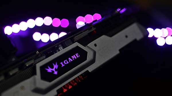RGB LED信仰燈也必不可少,可自定義顏色、呼吸頻率,iGame LOGO還可與風扇燈全同步顏色顯示,并根據轉速不同顯示多種波紋樣式。