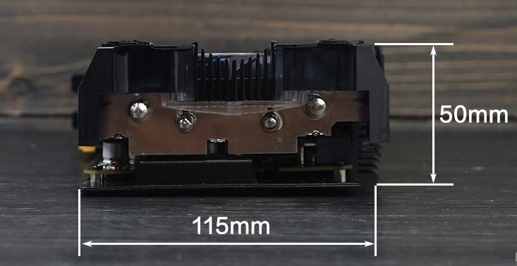整卡尺寸為 300×115×50mm ,屬于比較厚的產(chǎn)品,大抵是因?yàn)閮?nèi)部配備了大量散熱鰭片的緣故。