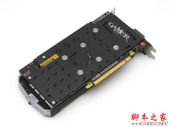 背板護(hù)甲是GTX 1050Ti這個級別顯卡少見的設(shè)計,它使影馳GTX 1050Ti GAMER拿在手里覺得很敦實,分量十足。