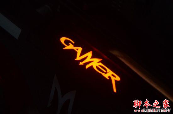 通電后GAMER信仰燈發(fā)出紅色的光,這里拍的有些過暴,成橘黃色了