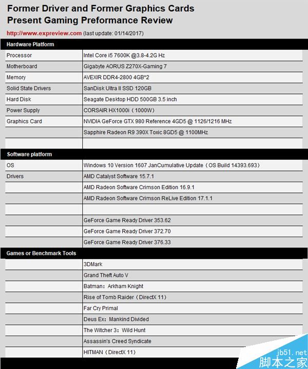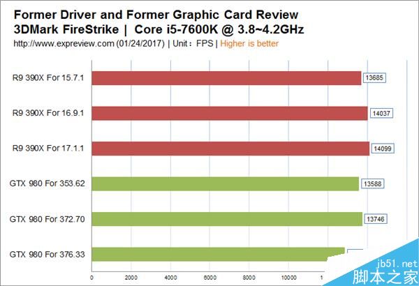 最后一款時間點為現(xiàn)在(本文完成時間為春節(jié)前夕),因此選取的驅(qū)動版本為Radeon Software Crimson ReLive Edition 17.1.1、GeForce Game Ready 376.33,共六款驅(qū)動。