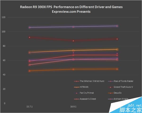 那么AMD陣營的Radeon R9 390X表現(xiàn)如何呢?我們還是先擺出總的性能變化走勢圖: