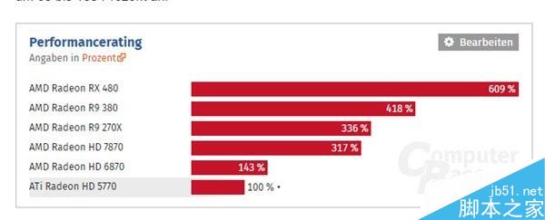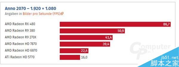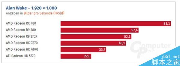 從HD 5770到RX 480顯卡,游戲性能已經是HD 5770的6倍左右,盡管這兩款產品并不是一個等級上的(HD 5770建議價是159美元,RX 480是199美元起)。