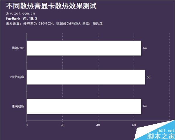 涂硅脂的情況下下能正常開機,但是開機之后顯卡核心溫度上升極快,在烤機時短暫時間之后就會出現死機、崩潰等情況,而跑分軟件無法正常打開,所以記為0分,而硅脂只涂一半下,烤機溫度上升依然非常的快,但是顯卡正常的完成了跑分的測試,跑分成績偏低。最后是土豪的多涂硅脂,烤機的溫度還相當的不錯,跑分的成績也比較正常。