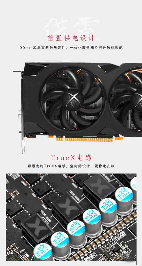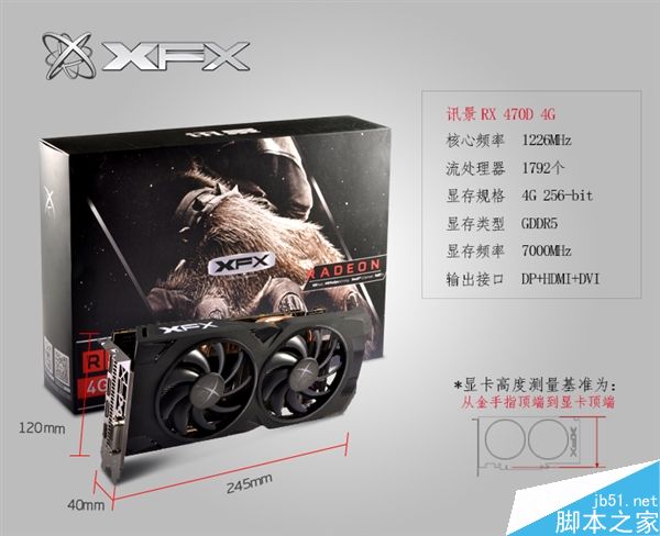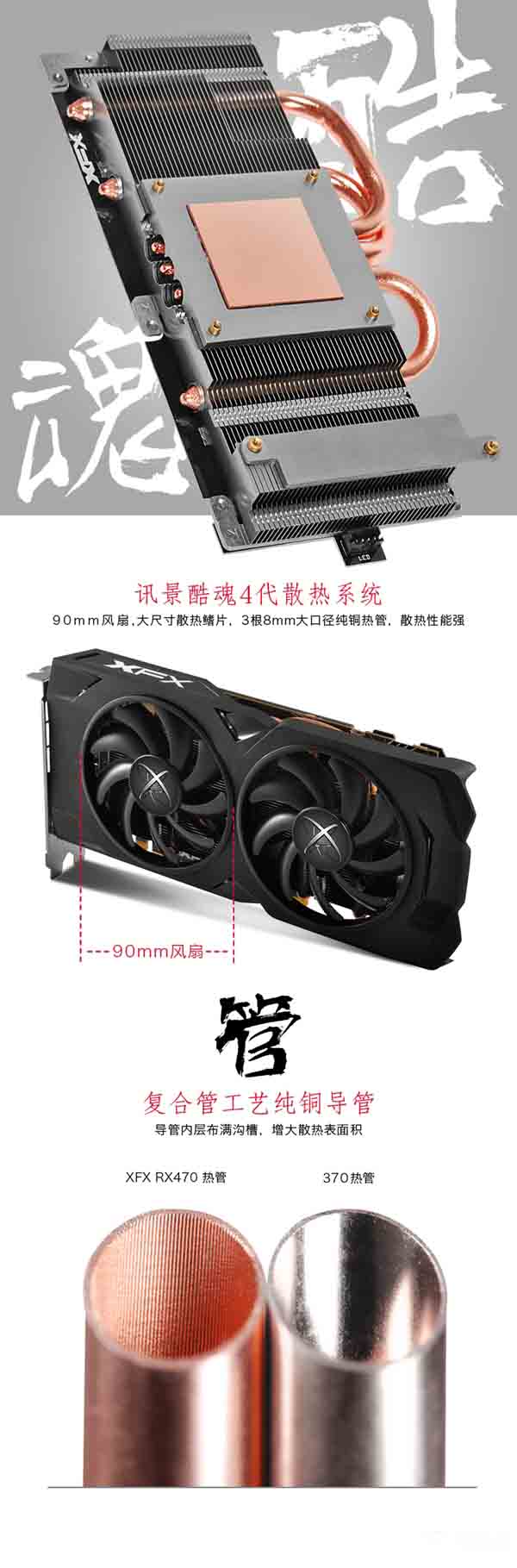 訊景這塊RX 470D黑狼版的核心頻率為1226MHz,4GB GDDR5顯存頻率提高到7GHz,提供四代酷魂散熱系統(雙風扇三熱管)、陽極氧化鋁金屬背板、DVI/HDMI/3×DP輸出接口、雙BIOS。