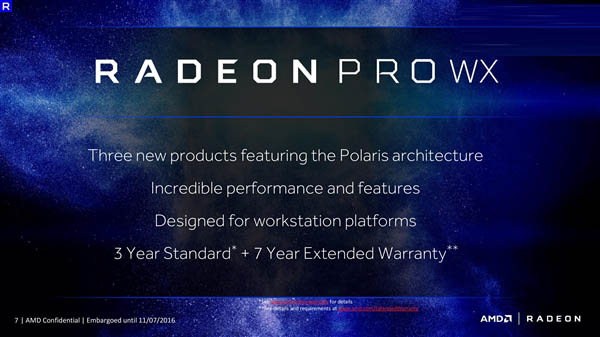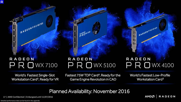 AMD 7月份宣布了全新的Radeon Pro WX系列專業顯卡,采用14nm工藝的北極星架構,同時意味著使用多年的FirePro品牌被廢止。