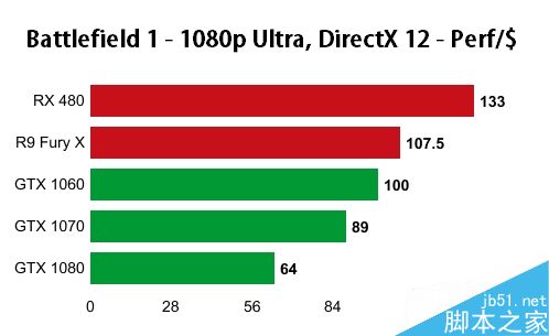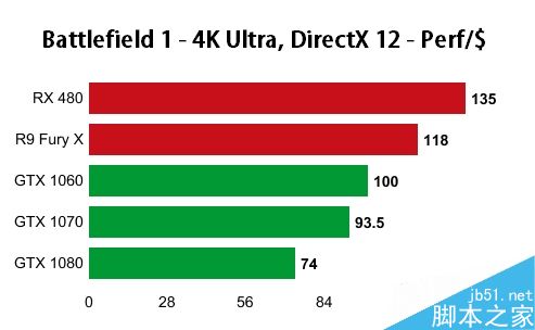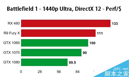 如果以每1美元能取得的性能來看,在三種分辨率下,RX 480都高居榜首,其次是Fury X,然后才輪到106/1070/1080三兄弟。