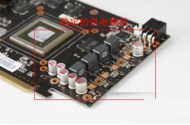 1、穩定供電模組:顯卡穩定工作需要穩定的供電,穩定就是在顯卡在滿負荷運作時,電源可以提供相對穩定的電壓,保證充足電流供應,而不會因為顯卡負荷大而導致電壓也跟著一起變化,這就是穩定供電。
