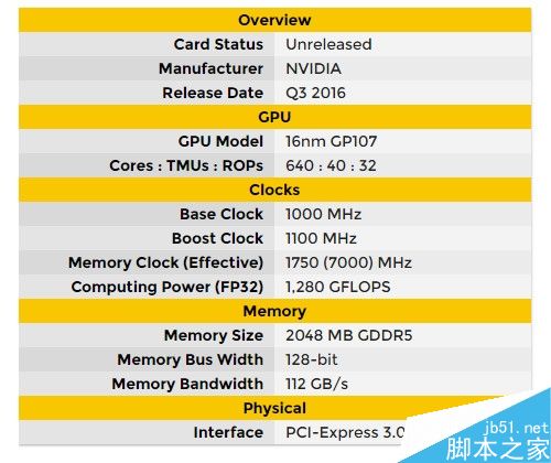 消息人士透露,GTX 1040定于Q3發布,流處理器數量只有640個,也就是6GB 1060的一半,1070的1/3。