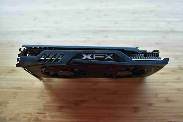 RX 480黑狼進化版的背板也是經過了XFX重新設計,背板上印有XFX的LOGO,而且開孔上也有3個圖形拼湊出的圖案,整體來說這塊背板比以往的都要好看,在上機后一定會帶來不一樣的視覺享受。