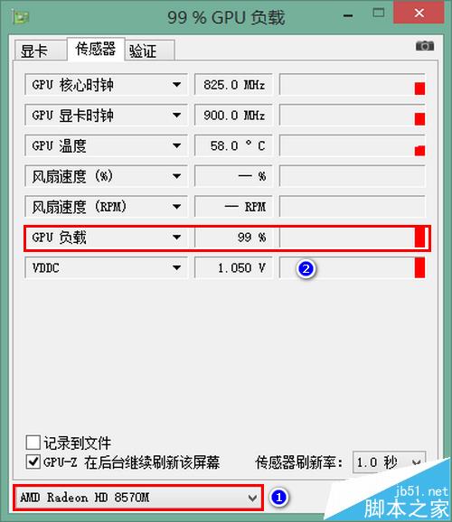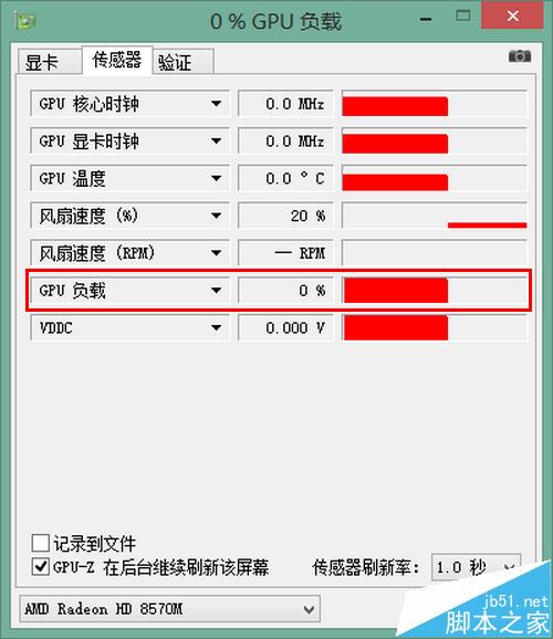 4、查看方法:打開GPU-Z,切換到“傳感器”選項卡,再選擇好要查看的顯卡,就可以看到顯卡負載了。