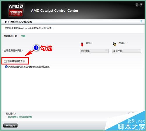 4、最后,在全局設置中勾選“還有其他省電方法”,再點擊“應用”。