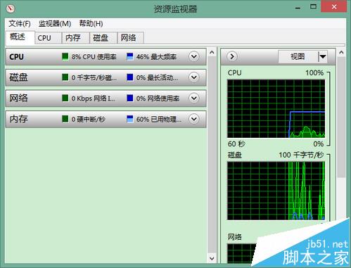 2、而且,就算你更進一步打開了系統中的資源監視器,雖然顯示的項目更為詳細,也是無法看到顯卡的使用情況的。