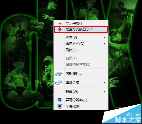 2、安裝了ATI顯卡驅動程序之后,在桌面右擊鼠標,然后選擇“配置可交換顯示卡”。