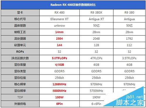 ●RX480規(guī)格參數(shù):主頻大幅度提升、單6pin供電