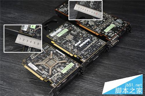 從背面看才發(fā)現(xiàn),其實(shí)RX480的PCB板比NANO只長(zhǎng)了26mm,也就一節(jié)手指頭的長(zhǎng)度而已。之所以正面看長(zhǎng)了那么多,是因?yàn)楣鍾X480采用的渦輪散熱器是突出來(lái)的。而對(duì)比R9290X的話,PCB板則短了90mm,因此假如非公版RX480的散熱器不采用突出來(lái)的設(shè)計(jì),完全可以把顯卡整體控制得非常短小,小機(jī)箱可以無(wú)壓力容納。