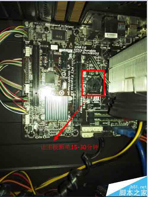 7、最有可能的一種原因就是再更換顯卡的時候,產生了靜電。這個時候,我們需要講主板上面的電池拔掉,讓主板放電,這個時間最好在15-30分鐘。如果電池不好取,我們可以先把顯卡取下來,等待15-30分鐘,主板重新安裝好電池之后,再安裝顯卡。