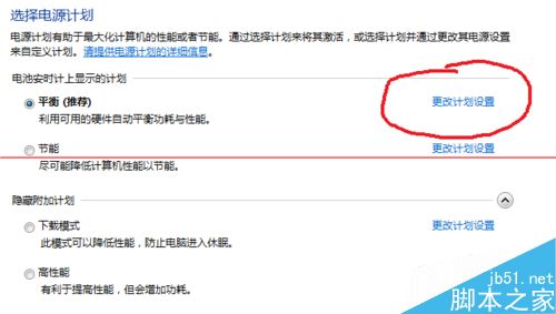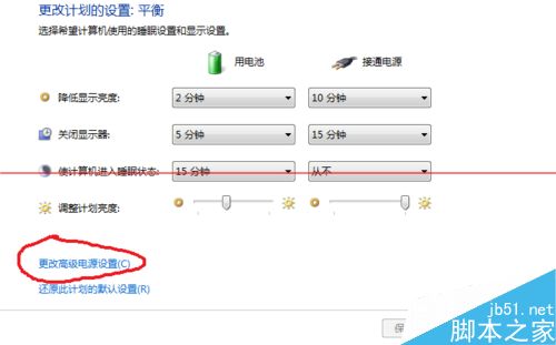 2、然后點擊后面的“更改計劃設置”選項,彈出如圖界面,然后選擇“更改高級電源設置”
