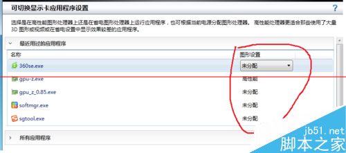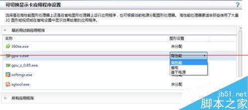 3、在你想要切換獨立顯卡的程序后面的下拉列表選擇“高性能”如圖所示