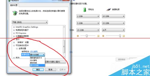 3、彈出如下界面,在此對話框中找到“可動態切換顯卡”,在接通電源下拉列表中選擇“最大化性能”即可,然后點擊確定,保留更改!
