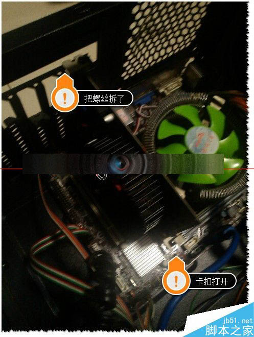 2、顯卡螺絲拆完,記住有的顯卡有卡扣一定把卡扣打開,拆的時(shí)候慢點(diǎn)不要太暴力了~~~如圖
