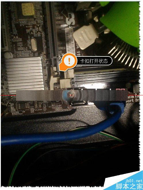 3、卡扣打開時(shí)是平的,這樣才可以把顯卡拆下。如圖