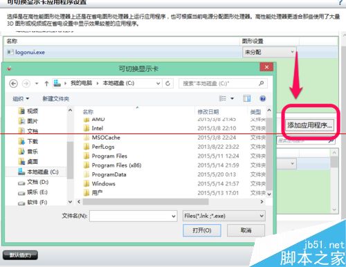 4、點(diǎn)擊”添加應(yīng)用程序“可直接在文件中選擇應(yīng)用程序,