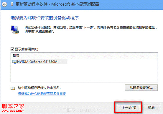 3. 從計算機的設備驅動程序列表中選取,下一步;