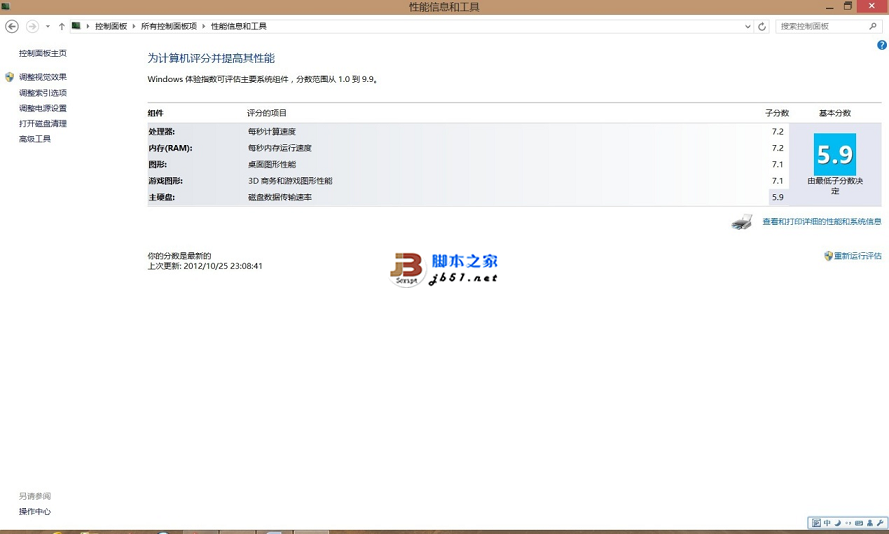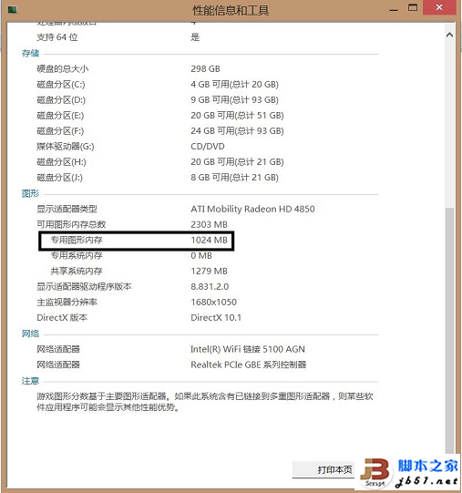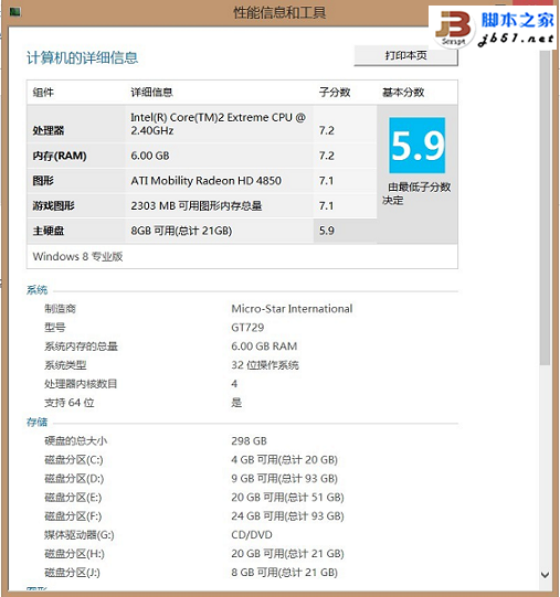 3. 然后選擇分數下方的“查看和打印詳細的性能和系統信息”,出現如下界面: