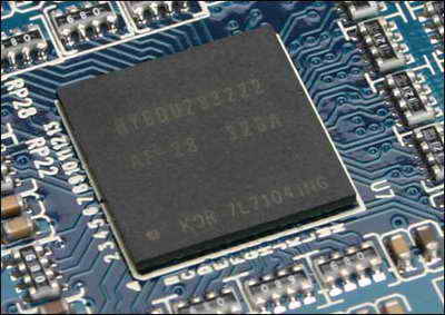 MBGA封裝的GDDR4顯存顆粒(0.8ns運行頻率可達2500MHz)