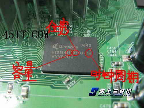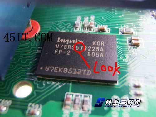 在來看看另一種非常常見的現代顯存,同三星有些不同的是,現代要看第6、7位數字,根據上面的計算公式得出的結論是:64、66表示64Mbit(8MB/顆),28=128Mbit(16MB/顆),56、57=256Mbit(32MB/顆),12=512Mbit(64MB/顆),那么這顆顯存的容量就是32MB/顆。 ]