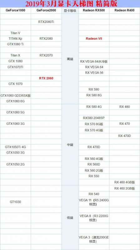 2019年2月顯卡天梯圖彩色版詳細版: