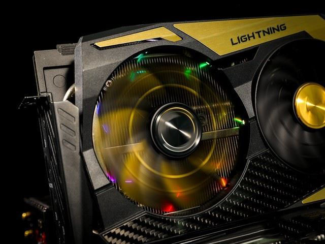 另外,顯卡還配備了“閃電炫影”設計,通過風扇旋轉與LED燈效相結合,應用視覺暫留原理,可以營造出千變萬化的酷炫光影特效。不過我們的同事看到默認RGB燈效時還是認為有些太“殺馬特”,如果通過燈效軟件換成單色會好上不少。
