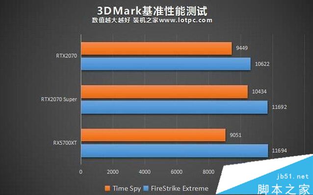 在3DMark理論測(cè)試環(huán)節(jié)中,RX5700XT在Time Spy項(xiàng)目中獲得了9051分,而RTX2070Super獲得了10434分,而在FireStrike Extreme項(xiàng)目中,RX5700XT獲得了11694分,而RTX2070Super獲得了11692分。在DX11環(huán)境下,RX5700XT只領(lǐng)先了2分的成績(jī),基本打平手,而RTX2070Super在DX12成績(jī)還是領(lǐng)先一些的。