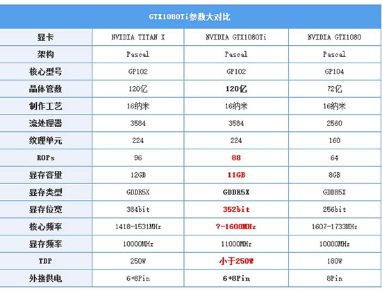 NVIDIA GTX 1080 Ti規格對比TITAN X/GTX1080哪個值得買?刀刀入肉