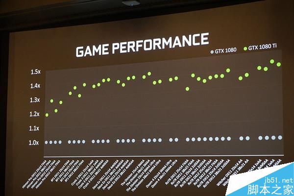 現場測試了多款游戲大作,在4K分辨率、特效全開、DX11/DX12的設置下,GTX1080Ti全都超過了GTX1080 25%~43%的幅度,相當驚人,需知道GTX1080本身就是非常頂級的顯卡了。