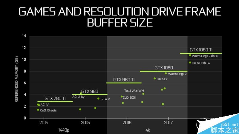 再加上新的無(wú)損4:1、8:1 Delta顏色壓縮模式,包括GTX 1080 Ti在內(nèi)的帕斯卡家族成員可以大大減少需要從現(xiàn)存中提取送給GPU的數(shù)據(jù)量。