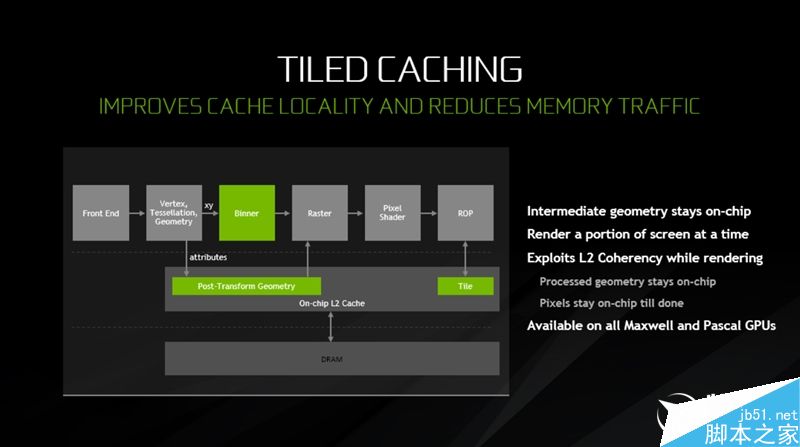 NVIDIA在上代麥克斯韋架構(gòu)中就加入了區(qū)塊渲染技術(shù),帕斯卡架構(gòu)中進(jìn)一步強(qiáng)化,但直到現(xiàn)在才公開(kāi)部分細(xì)節(jié)。
