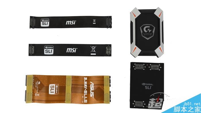 我們手上既有老的SLI橋,也有新的SLI HB橋,其中也有軟橋、硬橋,你們想知道它們用起來有區別嗎?那么直接告訴你們好了,其實它們幾乎是完全一樣的。只要正確地使用SLI橋,注意像圖中的msi軟橋,最好插滿兩根,不然性能會有一點下降。剩下的舊橋、新橋、軟橋、硬橋性能表現都一樣,或許不同廠商之間會有一個外觀的差異,就看哪個信仰燈更加能打動你了。